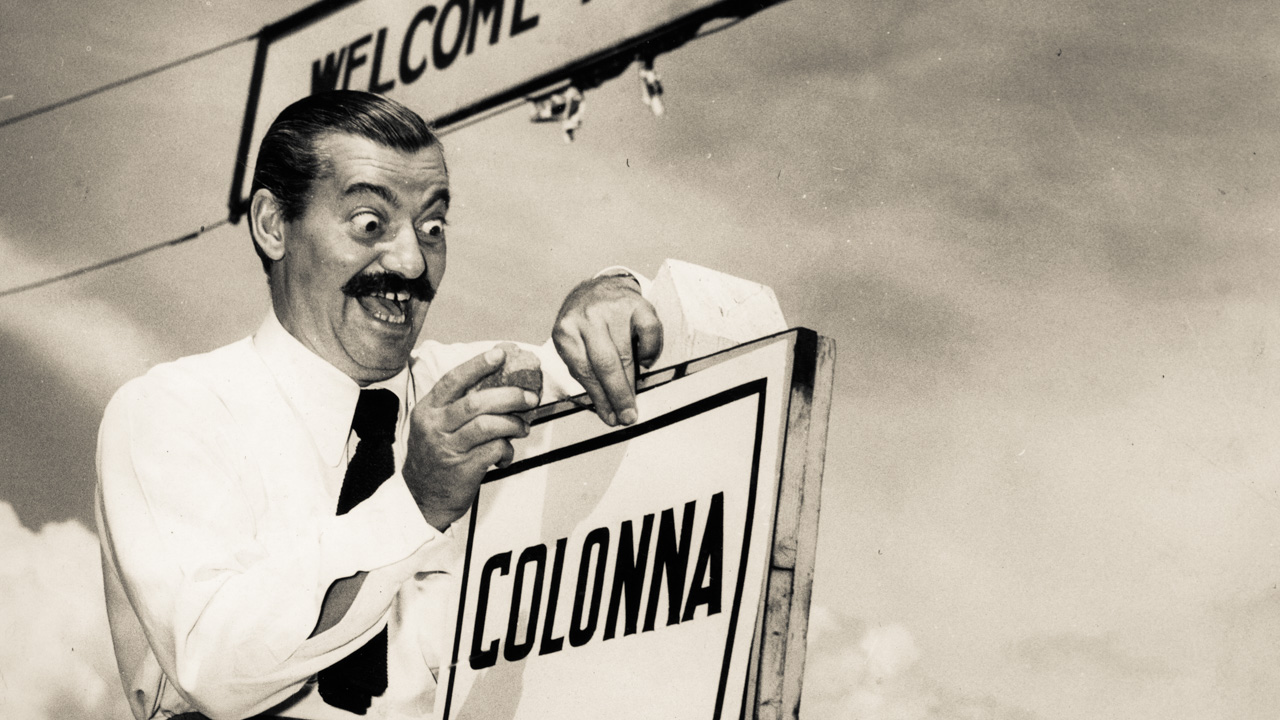 Comedian Jerry Colonna pushes the boundaries. He was performing at the annual Penticton BC regatta. Civic rival Kelowna BC is 39 miles to the north, so the wise guy took matters into his own hands.